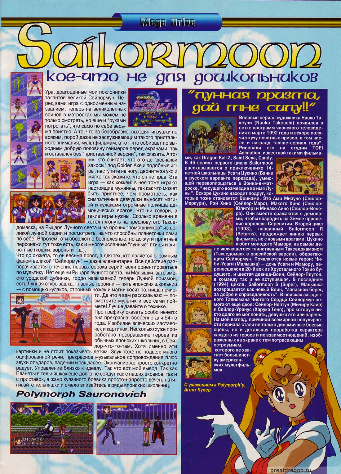 >>7954565 >из 34го номера журнала Великий Дракон ЗАЧЕМ они писали статьи про игры, картриджи с которыми в России было не купить до появления Интернета, и которые бы всё равно не заработали на наших, завезённых фирмой Денди в 90-е из Германии, SNES'ках? Там региональная заSHITа. Взломать можно (я у своей взломал), картриджи от Super Famicom могут не работать. Да, Sailor Moon внезапно выходила в PAL-регионе (а если точнее - в SECAM-регионе), во Франции, но на скринах - японка, да и картриджи фирма Денди завозила из Германии, не Франции. Единственная Сейлор Мун, в которую могли играть российские дети, у которых не было ПК и доступа Интернету - пиратка на Sega Mega Drive.