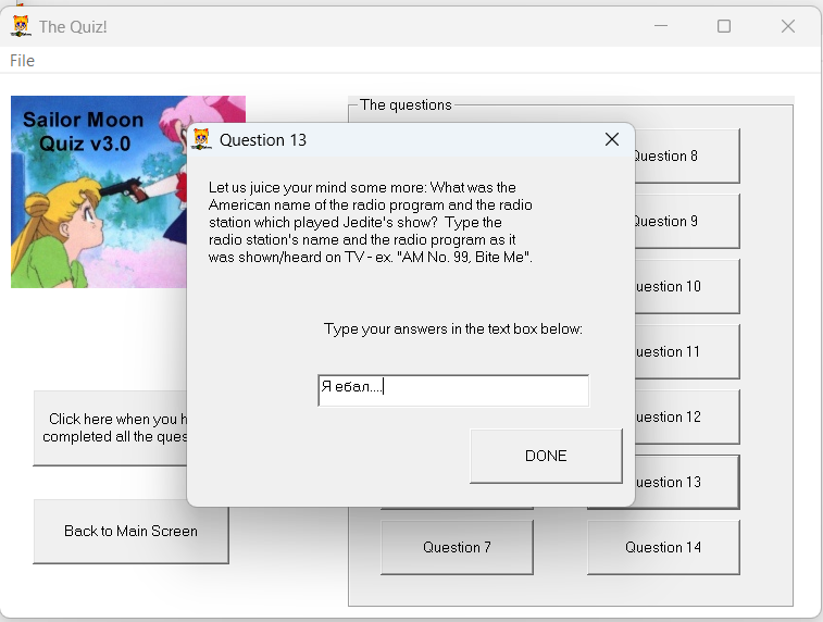 Предлагаю поклонникам СМ решить нелёгкую задачу. У меня с давнего 98года валяется один файл - квиз по СМ, казалось бы при наличии интернета пройти его не составит труда, но беда в то, что он в первую очередь рассчитан на североамериканскую аудиторию.