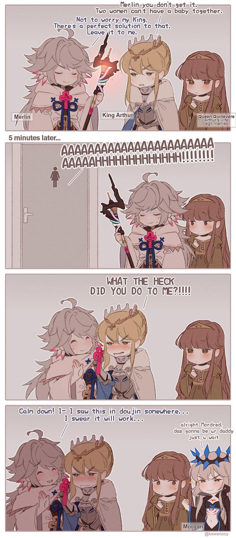 Пик4 Тетя Мерлин Лилитовна , могучий маг и тетя с прибабахом , любит сводить людей и высасывать их соки Объясняет Мордред как правильно обращаться со своей сестрой когда она вырастет