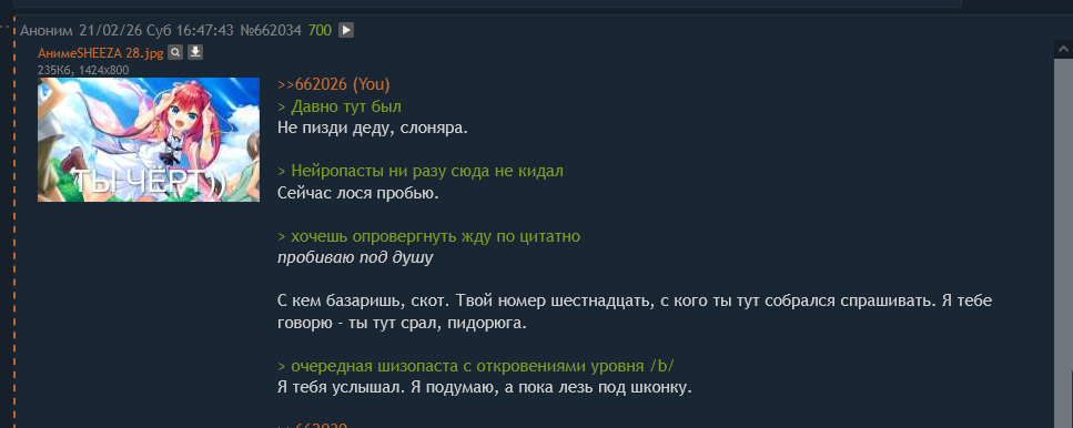 Это не ты года три назад срал тут Юкитой Соджи? Меня вдруг осенило. Ты же тот соджигомик, да и это чучело в кепке я уже видел. Нейрошиз, я тебя узнал. Сколько лет, сколько зим! А чего ты переобулся? Где Соджи?