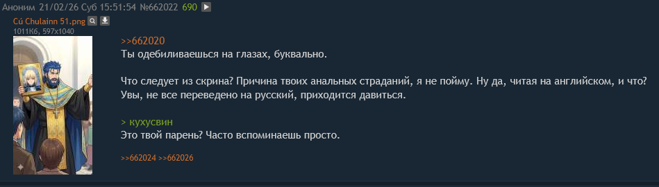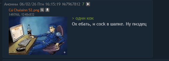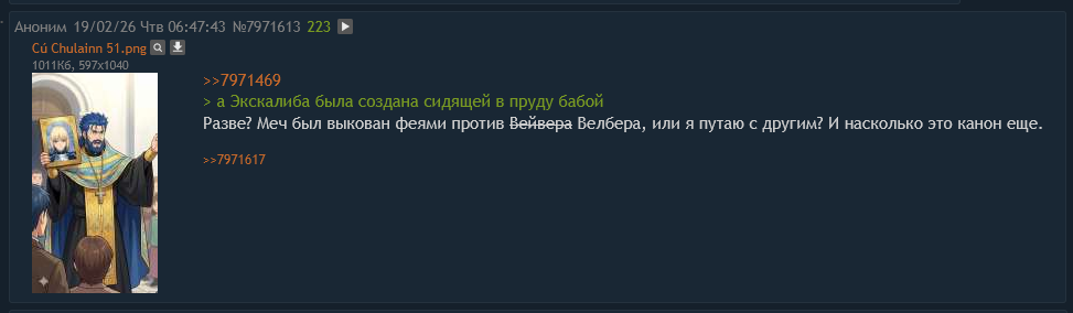 >>7967761 (OP) Ссылка на предыдущий тред в архиваче: https://arhivach.vc/thread/1214436/. Значимые хайлайты предыдущего треда. >>7938749 → - хайлайты предыдущего треда (со ссылкой на архивач), >>7939290 → - победит ли бабло Войну Святого Грааля? >>7939898 → - впечатления о Fate/Samurai Remnant, и вне очереди >>7950005 → - тех.проблема по F/SR и её решение, >>7940245 → - сбор всего контента по ТМ (спойлер: не взлетело), >>7941096 → - как вкатиться в фейтоту, >>7943292 → - Нобунага-рут в F/SN, >>7944001 → - ЦукИИхме, >>7954996 → - как читать Melty Blood? >>7959337 → - нарезки боёв из Heaven's Feel (сделано руками), >>7960930 → - нейроприключения в Насуверсе, >>7961447 → - F/GO - это сон собаки, теперь официально, >>7962601 → - первое явление нейромакаки, >>7963268 → - почему Гильгамеш ссыкло, >>7963279 → и дальше по курсу - нейрокартинощке, >>7963354 → - вы вдруг замечаете Арквейд Брюнстад, ваши действия? >>7963617 → - Война Святого Гранёного, >>7964011 → - версы Насуверса, >>7965692 → - потерянные посты насчет нашей незаменимой Лувиагеллиты Эдельфельт, >>7965749 → - сравнение аниме и лайтновеллы F/Z и что смотреть дальше, >>7965899 → - Tsukihime 2, который мы потеряли, >>7967070 → - сколько сейчас лет героям Насуверса, >>7967197 → - обсуждение нового ОП-поста, >>7967647 → - кто самая горячая сука всея фейтоверса? >>7967702 → - Артурия или Нерона?