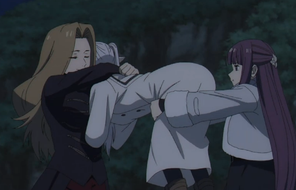 >>7975114 Именно так. Фрирен не относится к старку тепло, однако он ей нужен как воин для прикрытия группы в определённых ситуациях. Поэтому Фрирен относится к нему достаточно вежливо и с соблюдением норм приличия, и даже иногда ему помогает. Потому что если он уйдёт из группы, то Фрирен от этого проиграет. Собственно, взять в группу воина было её инициативой. А вот ферн просто срывает на старке злость и самоутверждается за его счёт.