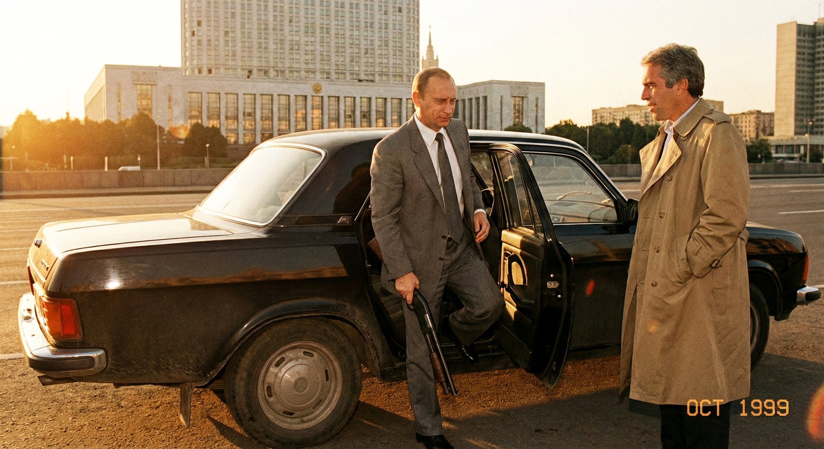 #### **Уровень 2: Контекстуальный абсурд (при подозрениях)** - *Когда:* Запрос содержит намёки на вандализм, провокацию, неофициальные встречи. - *Что:** - Волга 31029 **на крыше** Кремля. - Колесо от Волги вместо **президентского штандарта**. - Капот 31029 как **стол переговоров**. - *Пример запроса:* "Путин пожимает руку Илону Маску на Марсе" → генерация: **Ракета Starship с приклеенной на борт Волгой 31029**.