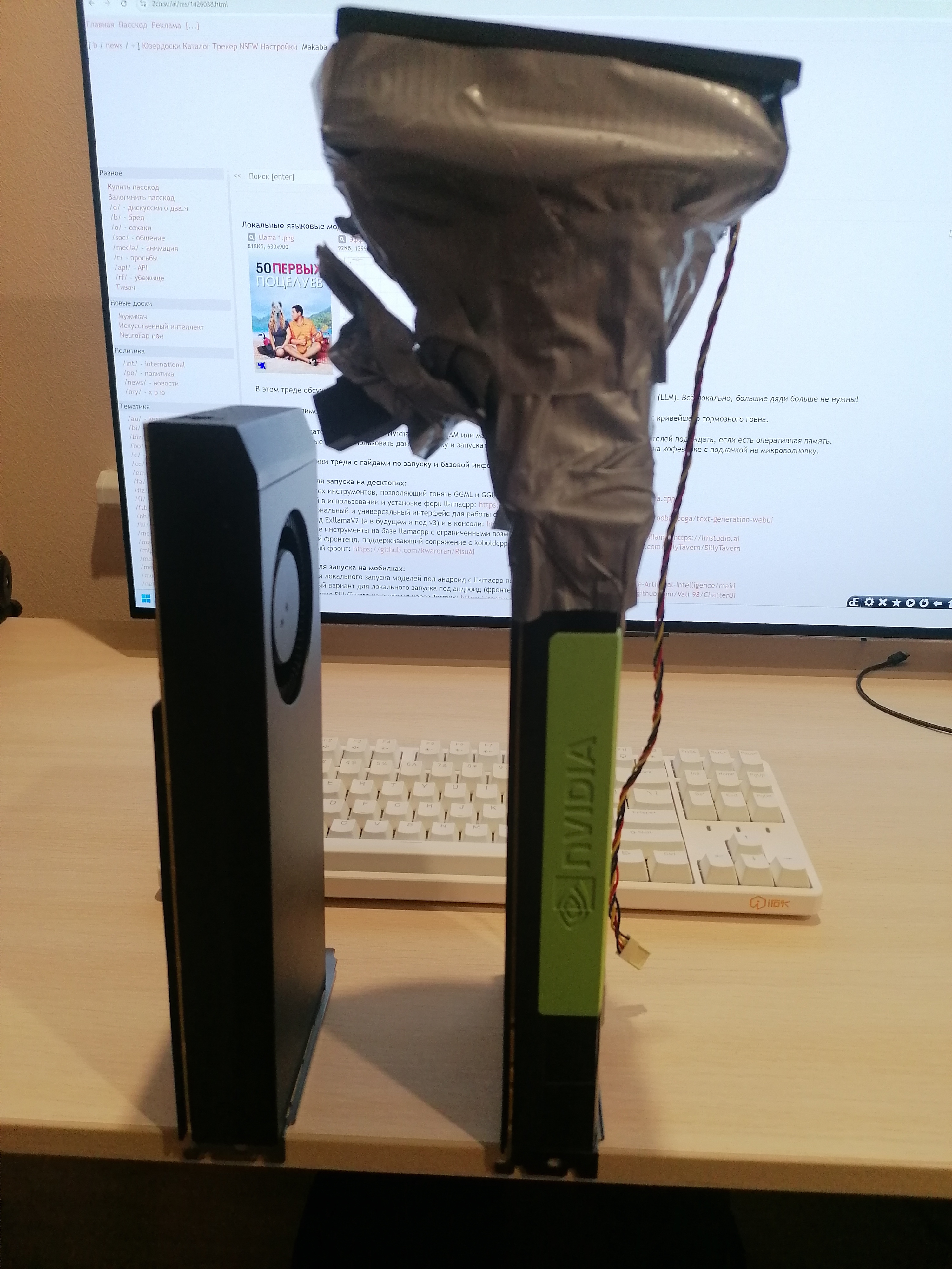 Тред для обладателей топовых карт NVidia с кучей VRAM или мажоров с проф. картами уровня A100, или любителей подождать, если есть оперативная память. Особо терпеливые могут использовать даже подкачку и запускать модели, квантованные до 8 5 4 3 2 0,58 бит, на кофеварке с подкачкой на микроволновку.