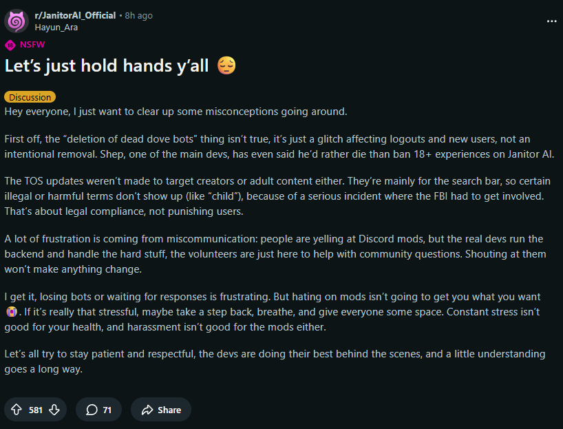 • Боты анонов: https://rentry.org/2chaicgtavernbots | https://rentry.org/2chaicgtavernbots2 | https://rentry.org/2chaicgtavernbots3