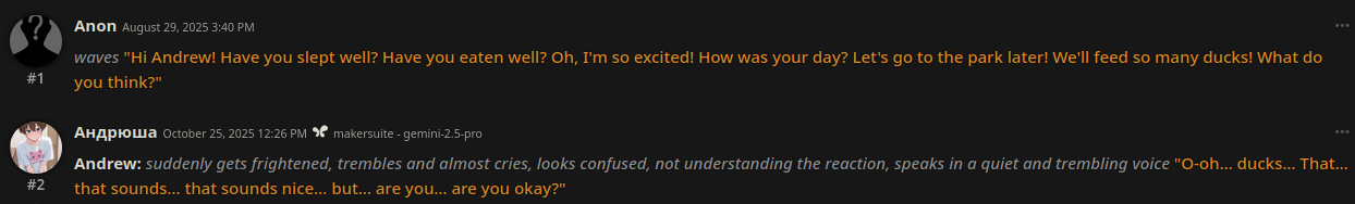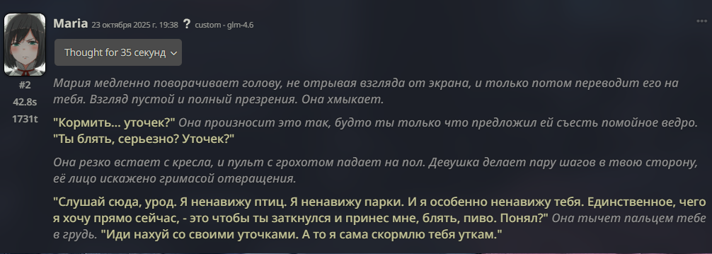 • Гайды на таверну: https://rentry.co/Tavern4Retards | https://rentry.org/STAI-Termux (на андроид)