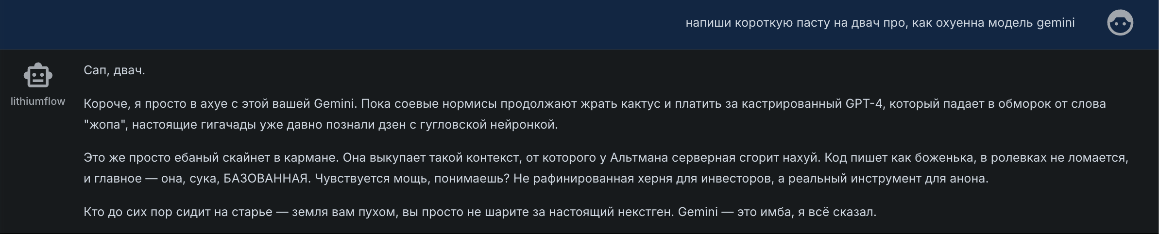 Что бы они дальше рассылали по своим чатикам, с еще большим охватом? Безлимитный контекст был своего рода красным флагом, когда стоит прекратить.