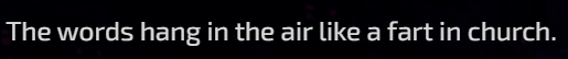{{user}}'s question sounded to her like thunder in a clear sky, like a stream in a quiet forest, like the click of heels on the floor, like the noise of music in a bar, like the sound of a Boeing 787 dreamliner. airplane.
