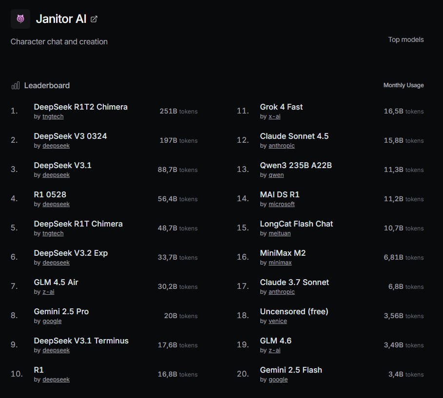 >>1416031 Клод постоянно спунфидят саранче+олдам на токен ключики сыпят Дипсик - заходишь в любую конфу яойгноя и лутаншь сурсы Гемини - если совсем еблан идёшь и регаешь гмаил, и всё, больше ничего не нужно