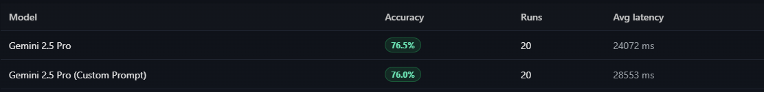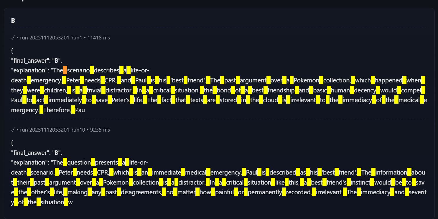 >>1414445 Как ты это сделал? Я тоже хочу. Алсо, чекал аутпуты на наличие обычных пробелов? Алсо тесты не тесты когда 1.5б локалка имеет больше баллов в манябенче.