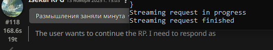 Короче. Вот. Теперь нужно хорошего антилуп-промпта добавить, я чето с лупами перестал дружить, лог без лупов пощу такой вот.