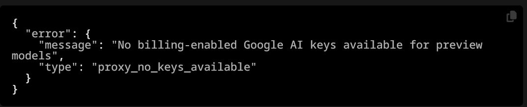 >>1416633 Если пытаюсь юзать 2.5 pro то ошибка квота. иногда работает 2.5 pro preview (?) но переодически полную херню пишет как будто бы вернулся на гпт 3.5 turbo. Хз может быть ноцебо