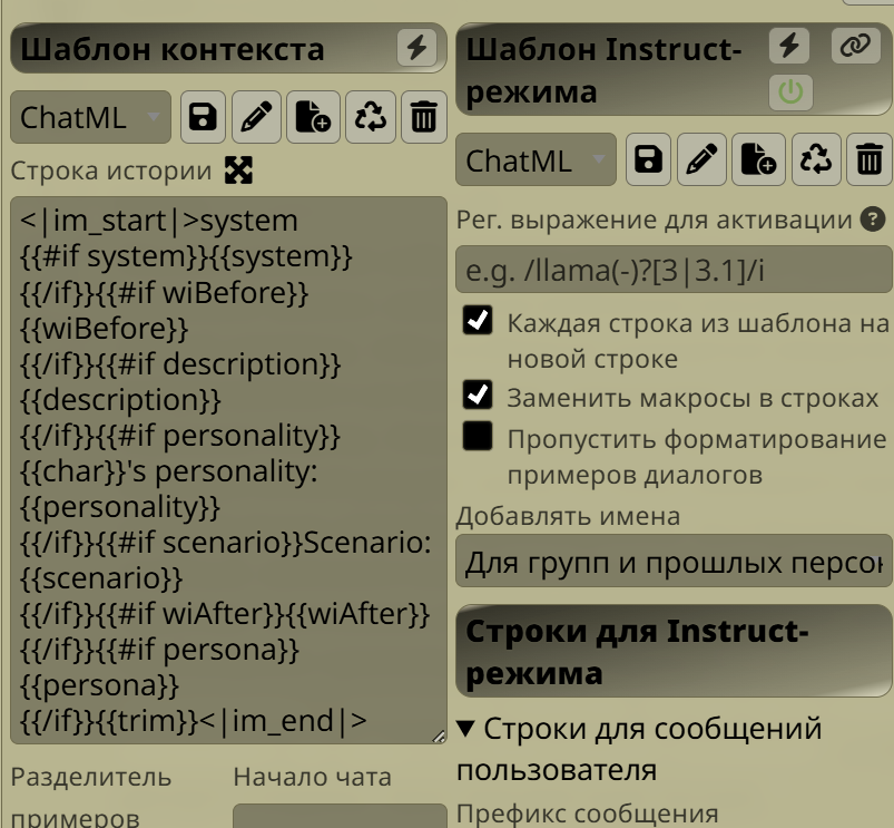 • Пресеты под локальный ролплей в различных форматах: https://huggingface.co/Virt-io/SillyTavern-Presets