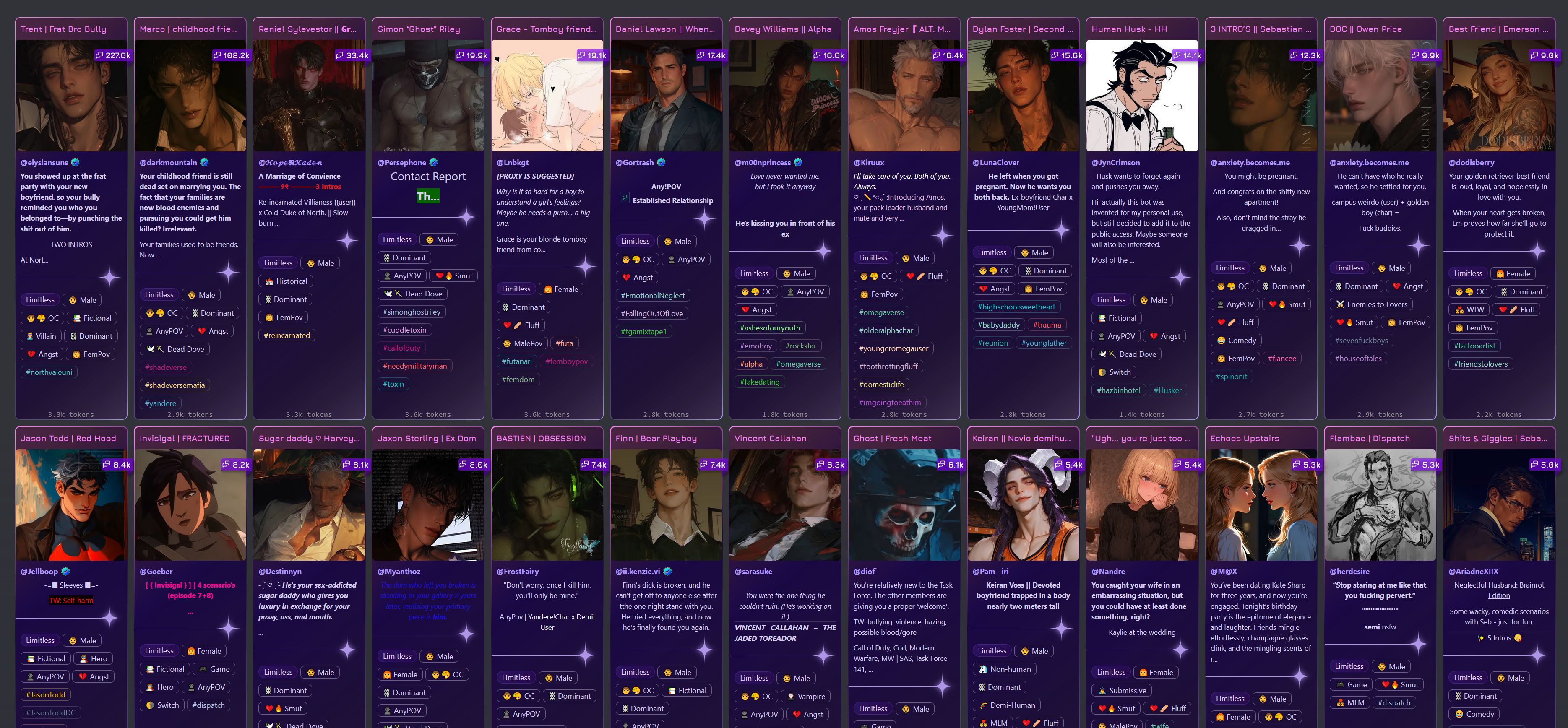 • Готовые карточки персонажей для ролплея в таверне: https://www.characterhub.org