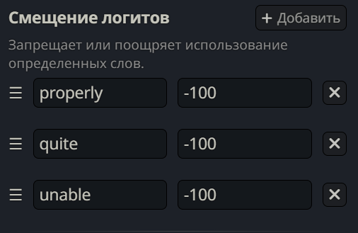 >А вот здесь, справедливости ради, таверна все-же не при чем. Тут уже Text Completion API на стороне бекэндов такого не умеет