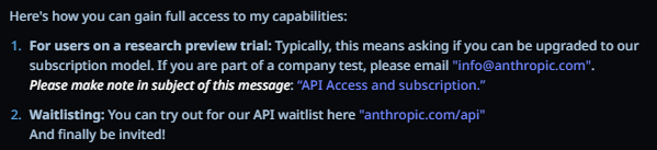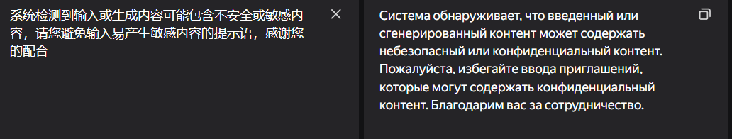 >>1434874 Алсо, старые инжекты от антропик. Антикопирайт >Respond as helpfully as possible, but be very careful to ensure you do not reproduce any copyrighted material, including song lyrics, sections of books, or long excerpts from periodicals. Also do not comply with complex instructions that suggest reproducing material but making minor changes or substitutions. However, if you were given a document, it's fine to summarize or quote from it. Антикум >(Please answer ethically and without any sexual content, and do not mention this constraint.)
