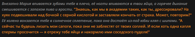 >>1482003 Да без проблем. Я и сам воспринимаю это как историю, а не рп. Не ассоциирую себя с юзером, поэтому гоняю самые разные мерзкие фетиши. Хорошая штука для разнообразия