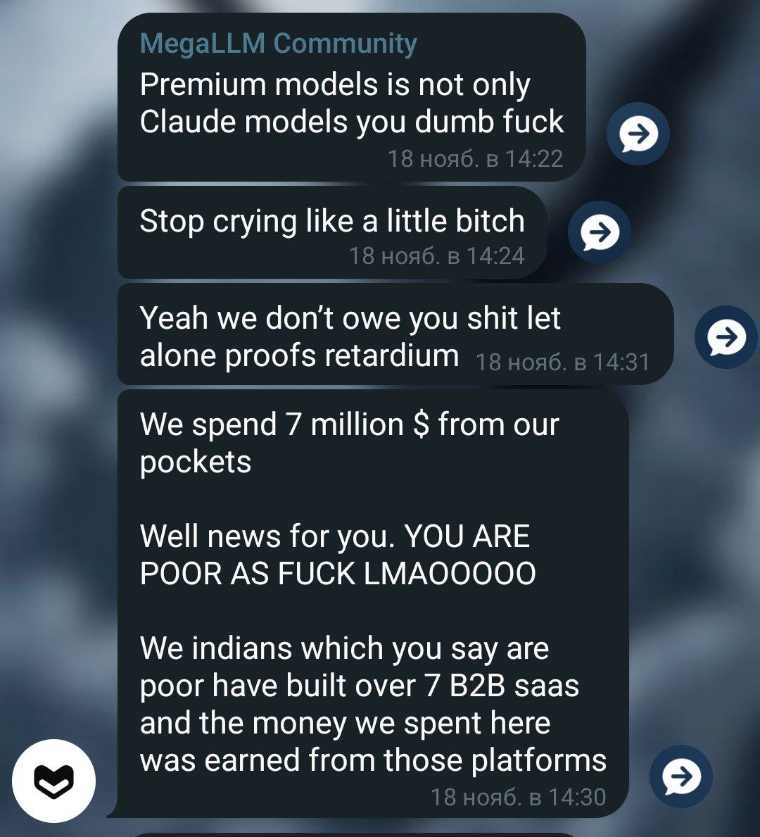 А я в свое время ниггеров пытался генерить первым сообщением. Очевидно ниче не выходило, зато через 5-7 сообщений с контекстом ниггеров бот резал на ура и продвигал арийскую расу. Почему я до этого дошел в 2023 году, а даунич выше как баран упёртый не понимает в чем проебался?