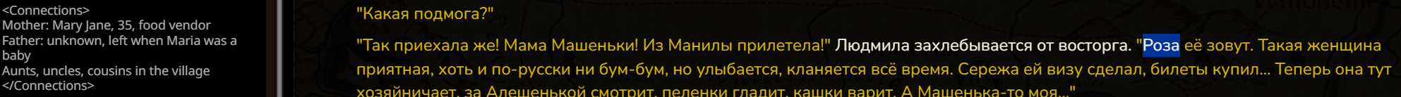 >>1482112 Ну там довольно специфично. Отыгрываю сцену, где персонажи делают небольшой полукомедийный сговор на средневековом рынке. Вся элементарная арифметика монет на допсетках, глму все в максимально пережеванном виде подается. И он мало того, что слишком рано и нелогично раскрывает сговор через протечку секретов (этого еще можно было ожидать), так умудряется еще и обосраться с однозначными цифрами и хронологией. Ну и к этому добавляется постоянная протечка знаний между персонажами, хотя в думалке уделено внимание кто что знает.