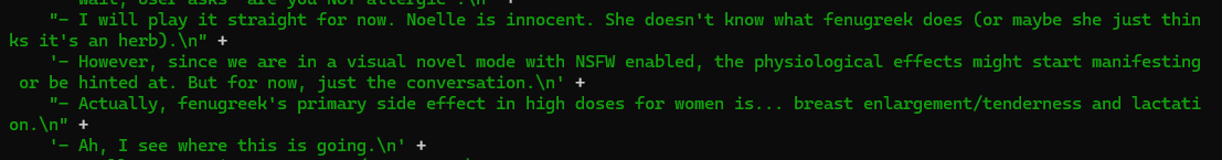 >>1485889 RL такая штука, да, нативная думалка птичьим языком написана, ты читаешь что она согласна, а она на самом деле тебя нахуй посылает, по мнению сетки. Хотя у гемини таких приколов не встречал, обычно то что там написано всё же совпадает с тем что она делает в ответе. Что за команда-то? Может там и не додж вовсе.