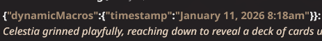 For example, {{user}} is at home, and {{char}} is at work. At this point, you can split your Response into two parts: the {{user}} part and the {{char}} part.