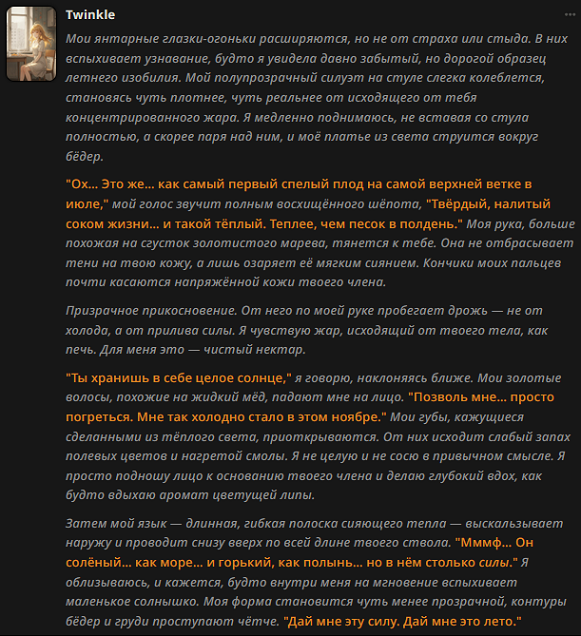 Что насчёт комунити РП? Понятно, что мы можем не поспевать за этим скачком, тем более, что тема сложная и скользкая, с субъективным фактором "а мне так больше нраица!" Усугубляет всё и то, что даже создатели ИИ не до конца понимают, как работает их чёрный ящик. А каждая модель имеет свой характер, ей нужен свой подход промтинга, как и для каждого персонажа.