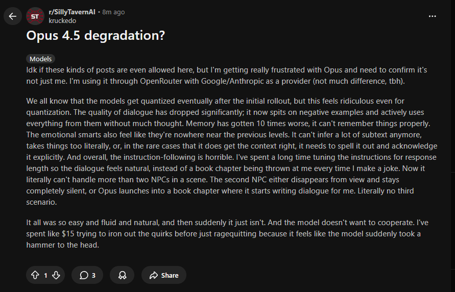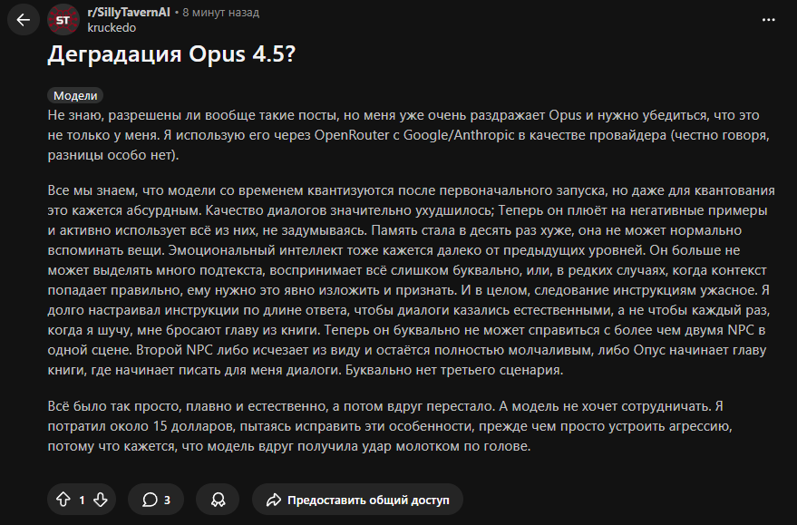 Мозги в рп это соннет 4.5. А гемини 3 про и опус 4 это что-то среднее между мозгами и качеством writing. Гемини 3 про лучше в русике, опус 4 лучше overall. В чем я не прав?