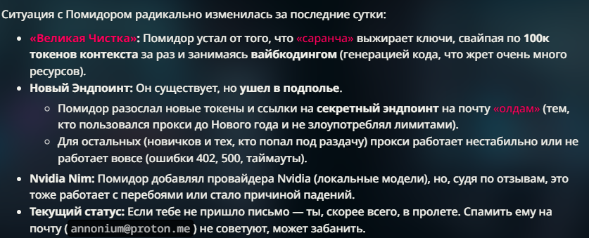 >>1485688 не совсем понимаю настроек чего если мистраль просто зарегайся у них на сайте и юзай если дипсик и другое то посмотри тут rentry.org/n9rggn7a для начала или прокси lafayette-collection-hygiene-terrorist.trycloudflare.com each-consumers-aging-planners.trycloudflare.com cell-endif-jobs-friendship.trycloudflare.com wound-nor-ie-commodity.trycloudflare.com mino.redemption.pw vip.jewproxy.tech - платно info.smol.services - платно