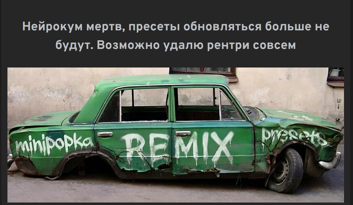 Блять. Сижу на опусе 4.5, пресет ремиксера, он отказался писать мне кум с тëлкой которой 18 и она моя подруга типо. Что за пизлец. У меня гневная тряска.