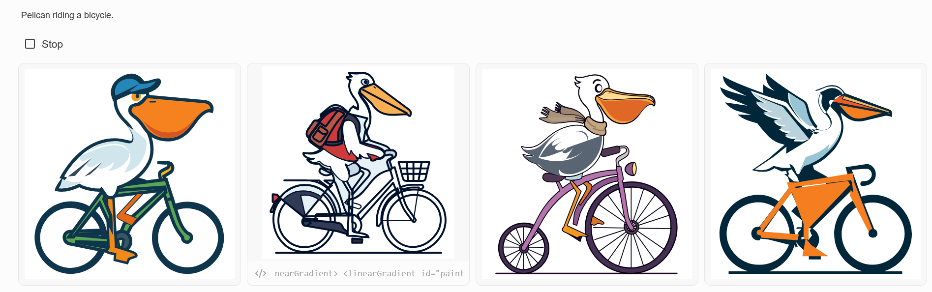 >>1534457 Ну чо, ниплох жирафы. Основное отличие - делает кривые линии, а не простые формы. Но это инструмент, а не llm - ни фантазии, ни души. Мб если ускорить и присобачить как генератор иллюстраций... Но через год уже будут нормальные мультимодальные ии, которые буквально синема.