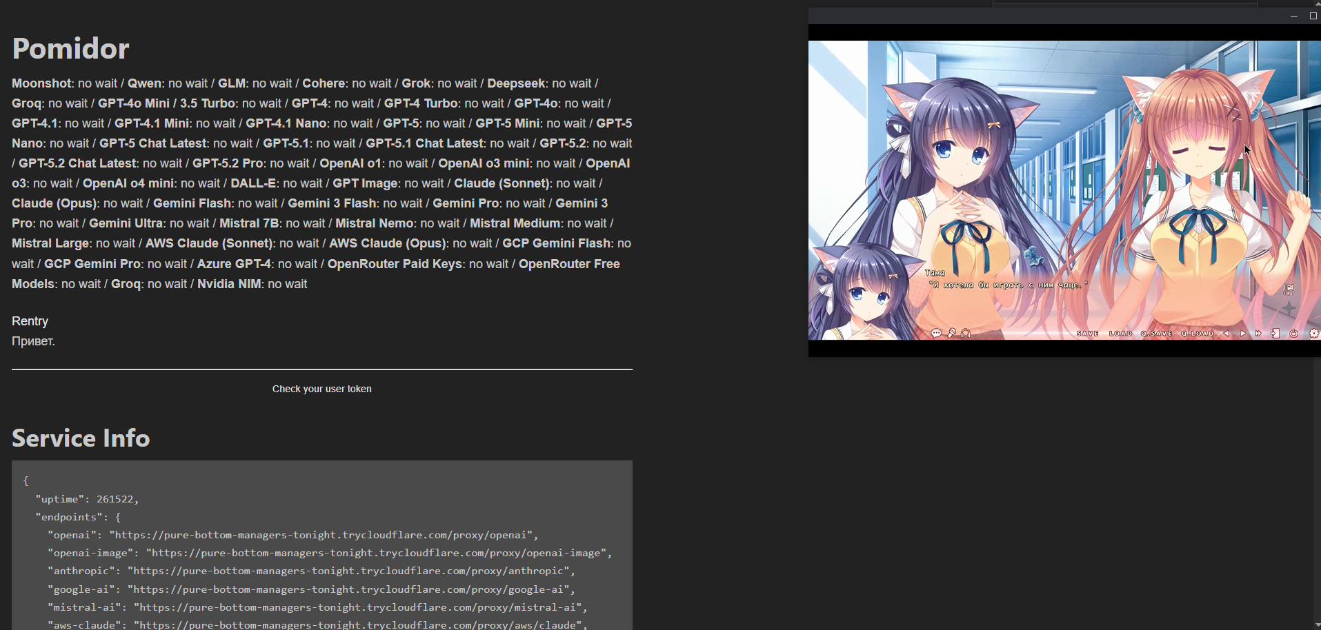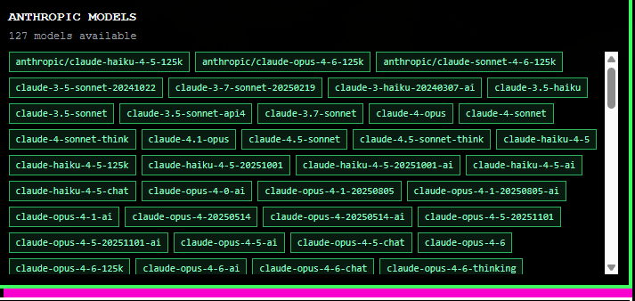 >>1537253 claude-opus-4-5-20251101 Працы Клода-4-5-20251101 claude-opus-4-6-20260206 Працы Клода-4-6-20260206 gemini-3.1-pro-previewСуперстабільны проксі Клода Неабмежаваны opus (неабмежаваная колькасць твораў) Падтрымлівае nsfw (падтрымлівае кантэнт NSFW) pse is/8pfxxc
