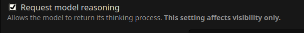 >>1537161 На iflow, это сильно варьируется. Иногда, приходит через несколько секунд (если без ризонинга, он скрытый). Иногда придёт пустой ответ, или таймаут, или ошибка типа api quota или throttling.