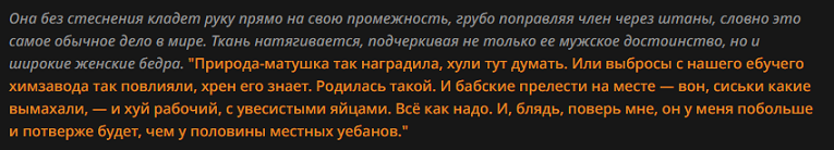 А сделайте короче карточку, где юзер секс слейв и владелица заставлят его пройти маскулинизацию. Хуй увеличить, накачаться, челюгу приделывает, агрессию повышает и т.д., короче чисто химбо чтобы получился.