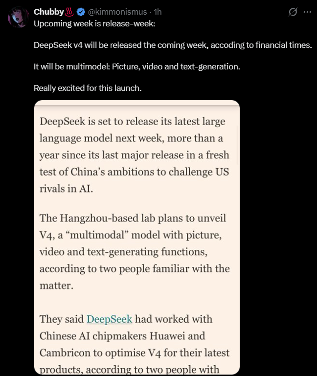 Правду говорят, что дипс 4 может генерировать видео в ответах? Это типа, можно сделать так, чтобы я делал ввод текстом, а нейронка реагировала и показывала короткими видосами (как в sora или grok imagine) вместо текстовых ответов? Или, даже если они может лишь приложить иллюстрацию (или комикс) к ответу текстом, то уже мега супер