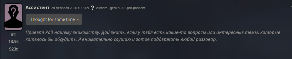 Мне кажется или у гемини слишком сильное внимание к контексту? Даже в ущерб логике. Вот пример ситуации. Юзер и чар приехали в Россию из Франции в гости к родственникам. Гемини 3.1 про пишет что они приехали на той машине, которая у них во Франции. Это же не логично столько гнать машину когда можно на самолете. А в конце сообщения пишет что у них билет на самолёт. А машину куда? Что за тупость? 3 про в самом начале сообщения пишет что юзер арендовал машину, что как-бы логично.
