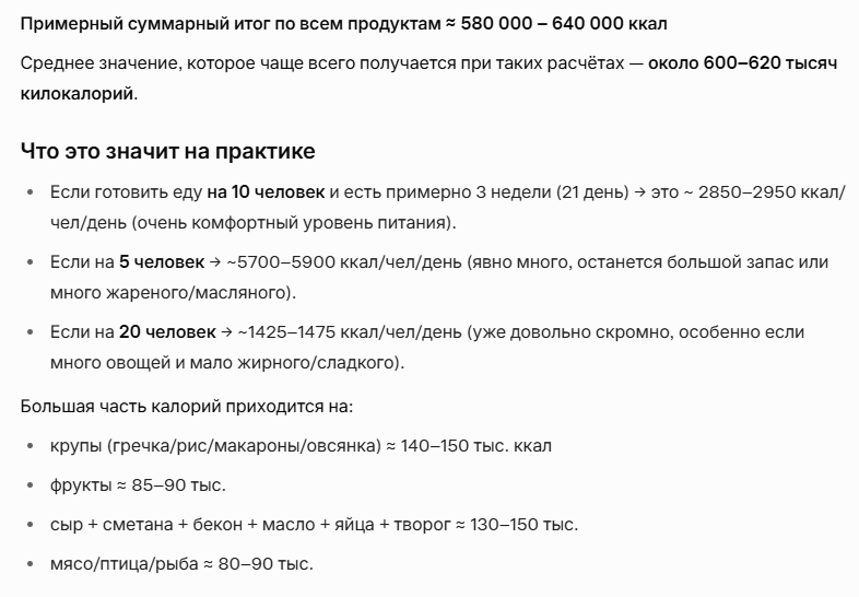 >>329241399 (OP) Итог Общая сумма списка (с учётом корректировок) превышает 150 000 рублей. Однако его главная проблема — не стоимость, а физическая невозможность и нецелесообразность такого питания.