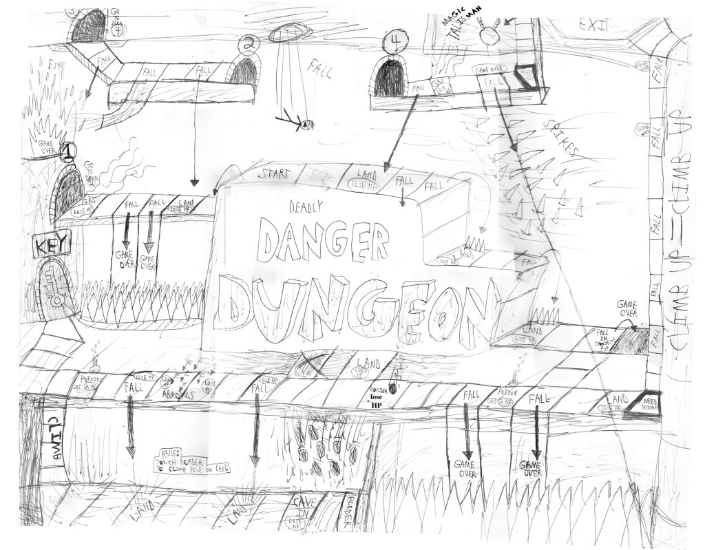 Начинаем с клетки START. Бай дефаулт у тебя 3 HP, пополнять их можно ступив на клетку Potion. Game over - мгновенная смерть с потерей всего, Lose HP - -1 HP. Значит, нужно дойти до клетки Exit, но по клеткам Climb up нельзя идти, пока не возьмёшь Magic Talisman, до которого нельзя добраться пока не возьмёшь Key.