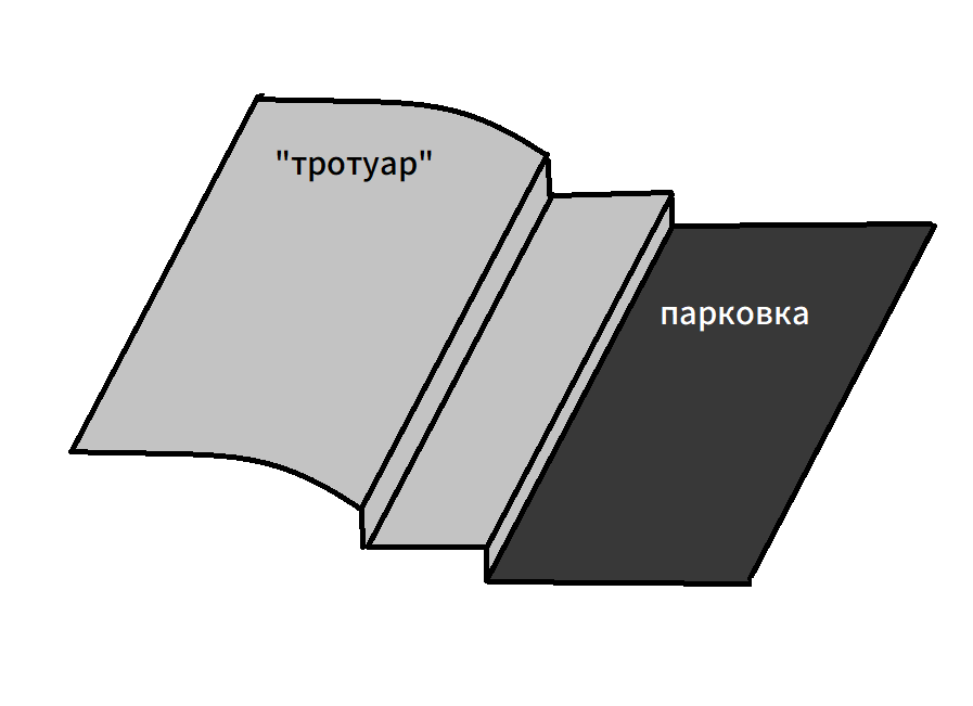 >>1637112 У меня есть такой участок, серое это "тротуар", он должен быть плоским но его блять положили вот с таким склоном)))))) Это перед каким-то важным административным зданием прикинь вот такое высрали. Правее пониженынй тротуар хз зачем вообще, дальше всё заставлено машинами, правее я не нарисовал уже дорога очень оживлённая где гоняют. Вот этот участок метров сто наверное, верхний тротуар шириной впритык на двух людей. Я там один раз наебнулся в гололёд и с тех пор езжу там только когда земля голая и безо льда. Алсо, там в конце участка жосткий дроп на 20 см, тоесть без плавного сьезда. Я хз каким таджикам они это поручали, тем более перед государственным зданием. Просто гигаплевок всем в морду, кроме автодебилов. Велосипедисты молятся что бы не было восьмёрки и не улететь вниз из-за шедевра архитектуры (склон и лёд комбо), самокатчики молятся что бы не напороться на этот дроп и не убиться бошкой об землю, инвалиды просто плачут дома тк не могут заехать на эту хуйню.