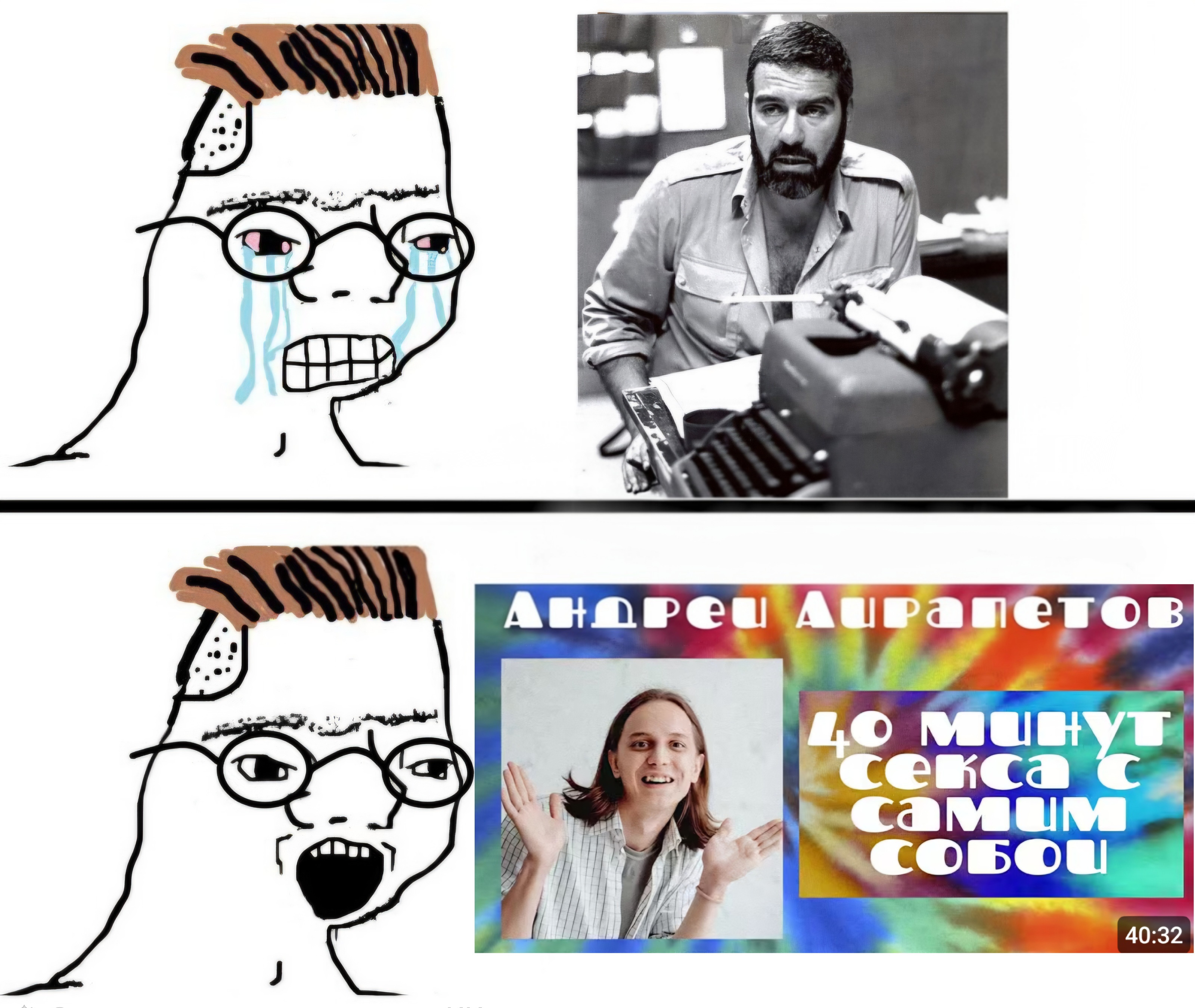 >>1036529 Основная прелесть этой книги состоит в том, что "Музпросвет" во многом является троллингом IRL. Горохов до скрежета зубовного, до брызг слюны ненавидит и презирает современную электронную музыку в виде EDM и IDM, а также её производителей и потребителей. Он долго занимался её промоушном просто "по работе", и это его со временем начало злить. Но пойти против господствующего тогда тренда и клубного движа он не мог - отсюда и фига в кармане, со временем ставшая почти навязчивой идеей. Начиная с самих передач и заканчивая книгой по мотивам текстов для них. Так-то ему, внезапно, на самом деле нравятся краутрок, ранняя немецкая электронная музыка, а также разнообразный фолк и околофолк разных стран и народов. Но о них он пишет мало. Потому что быдлу не палят годноту.