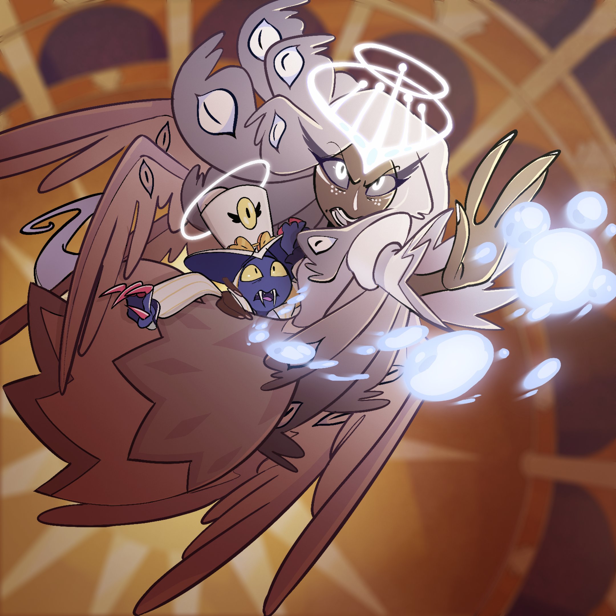 >Дальше идёт моя фантазия на тему Пентиус вообще сначала был как план, потому что нам часто показывали что Вокс очень тупит против Аластора (техника рядом с ним лагает, видимо телек тоже) и часто делает какие-то необдуманные решения. Так вот, если бы Энджел реально пытался следить то скорее всего как то тупо бы спалился (аластор бы точно заметил), а ещё дружба с Ниффти и Хаском выглядела бы корыстно. Да и вообще кроме первой серии первого сезона я не помню чтобы Энджел и Аластор вообще разговаривали. А ещё, Вокс бы не смог его заставить например следовать за Вегги, а без этого он бы и сам не узнал слабость Люцифера. Последствия твоего варианта почти такие же как в сериале (не думаю что его не простят если он хотел навредить только Аластору), только в сериале Энджел даже не виноват особо, а у тебя понятно почему он в рай не попал. Также, его начали гипнотизировать в четвертой серии, а до этого нам показали что он реально загорелся идеей искупления и проникся постояльцами отеля, не знаю что ему такого могли Ви обещать