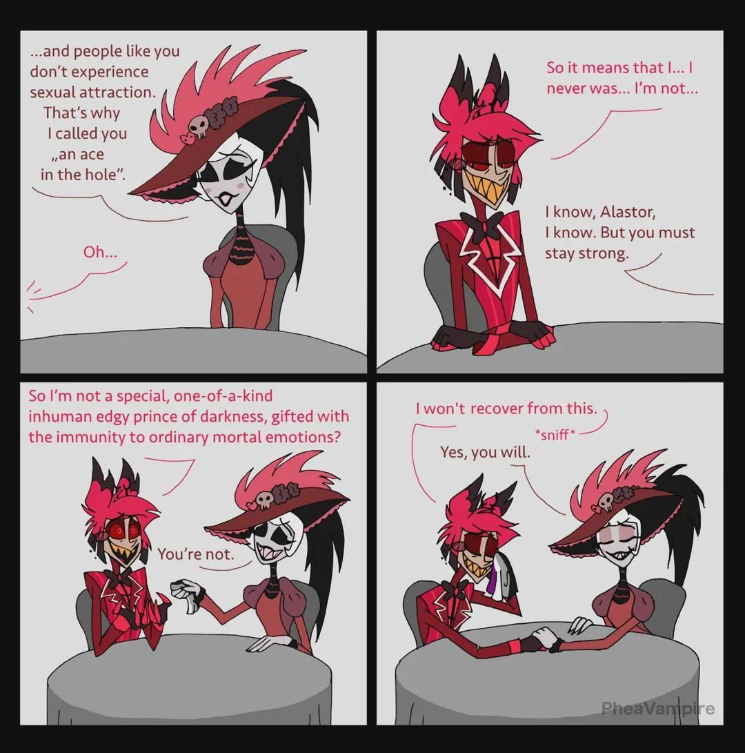 >Дружба Аластора и Люцифера позже зародится (были про это новости) потому, что надо больше яоя, и хаскердаст туда же, как и максимально натянутый черри х пентиус