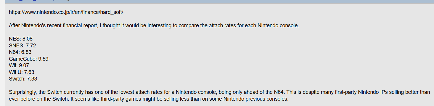 Гораздо важнее, что нинка охуела использовать дохлое железо 4 летней давности. Это значит, что свитч 2 устареет ещё до выхода олед версии и актуальная ААА мультиплатформа очень быстро перестанет выходить. Как было с первым свитчом только сейчас это произойдёт даже раньше.