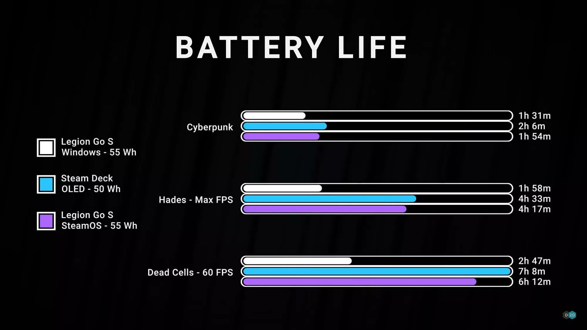 Киберпук на сыче с более высоким уровнем графики проработал вдвое дольше, чем на rog ally. 2:30 против 1:15. И это при том, что рогалик работал на стимооси, а не на винде.