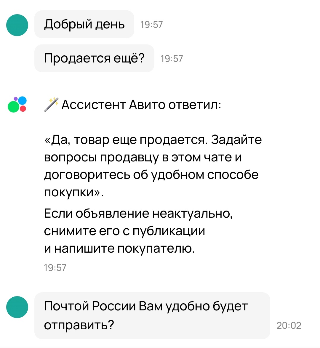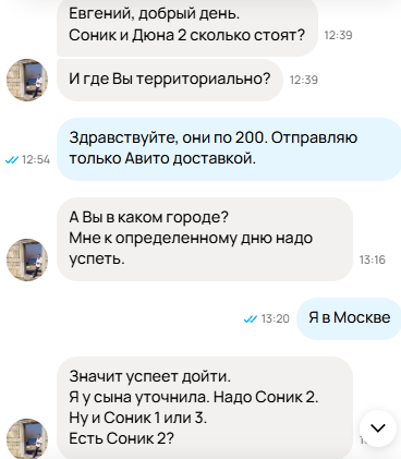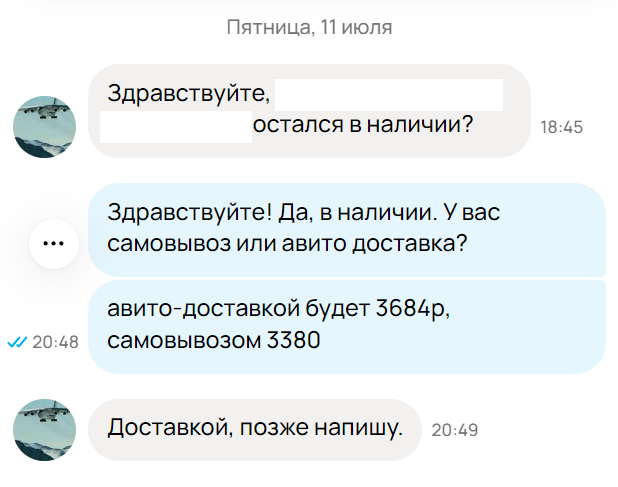 В: На авито приходят сообщения типа "еще продаете" или "отправите доставкой", отвечаю и дальше меня всегда игнорят, как быть? О: Гении из авито сделали кнопки для начала диалога, покупатель случайно их нажимает. Терпи.