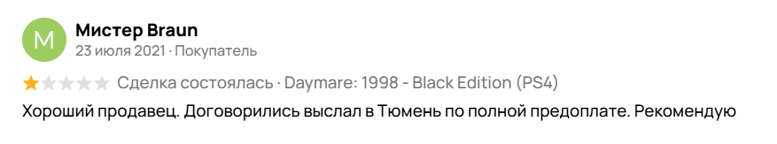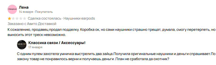 >Твоя оценка глобально ни на что не влияет, т.к. любой адекватный покупатель не просто смотрит на рейтинг (если он ему так важен), а потратит минуту на чтение негативных отзывом. Вообще похуй что там дальше у него будет, главное получить моральное удовлетворение за месть за игнор у меня вьетнамские флешбеки после сайтов знакомств >И еще, продавец может такие отзывы обжаловать, и они перейдут в отзывы без оценки, т.к. сделки и встречи не было Ну ты прям Америку открываешь! К слову, 80% этого не делают, что говорит об интеллектуальном развитии игнорщиков.