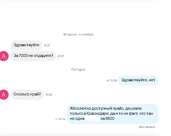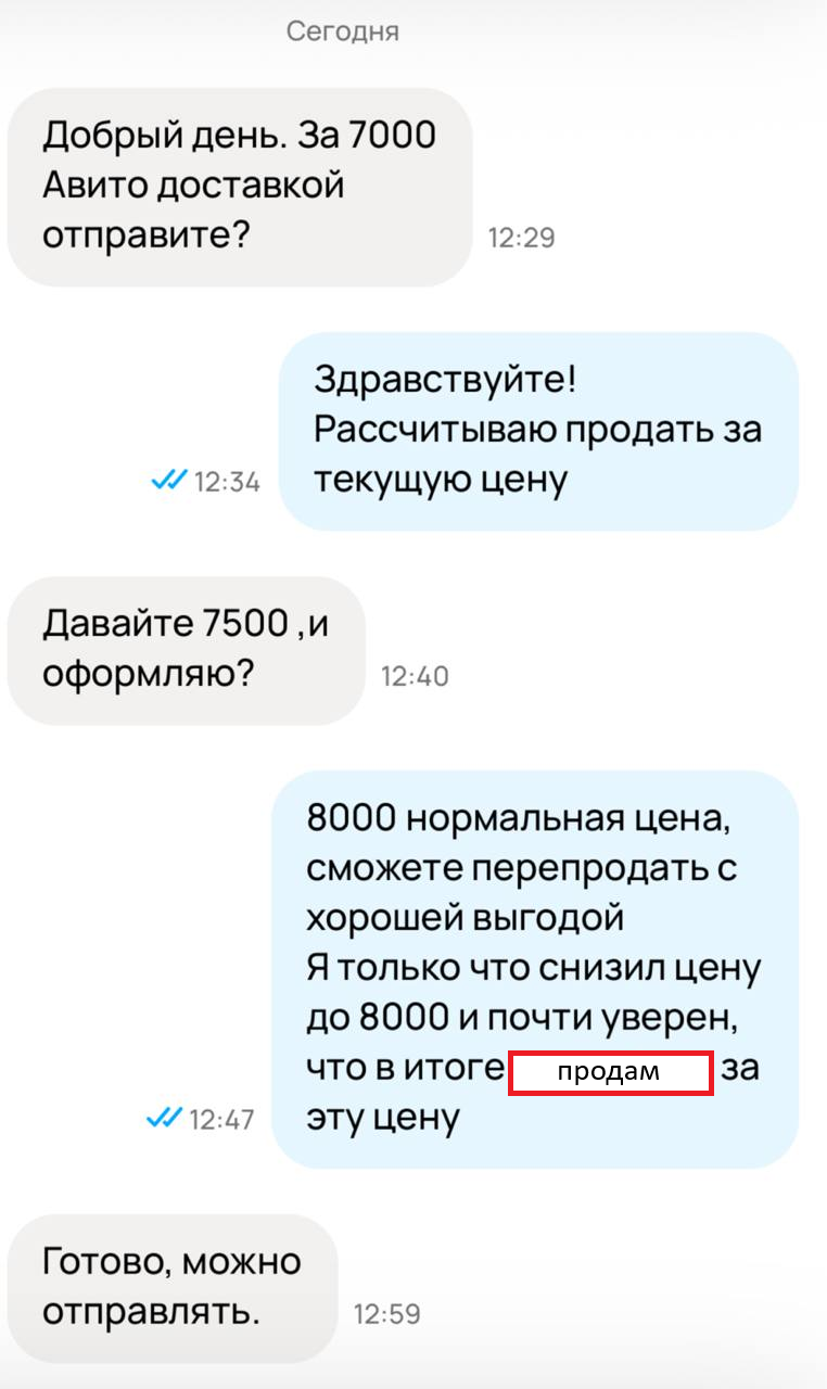 Ну то есть, блять, камон - конверсия на авите ебаной и так очень низкая, лично я делаю всё возможное, чтобы её увеличить - красивые фото, видео, короткое, но максимально ёмкое и информативное описание, достака включена и отправляю любыми способами (даже ебаным dpd, который от меня в двух станциях метро - благо, им заказывают раз в год), максимально оперативно отвечаю и так далее.