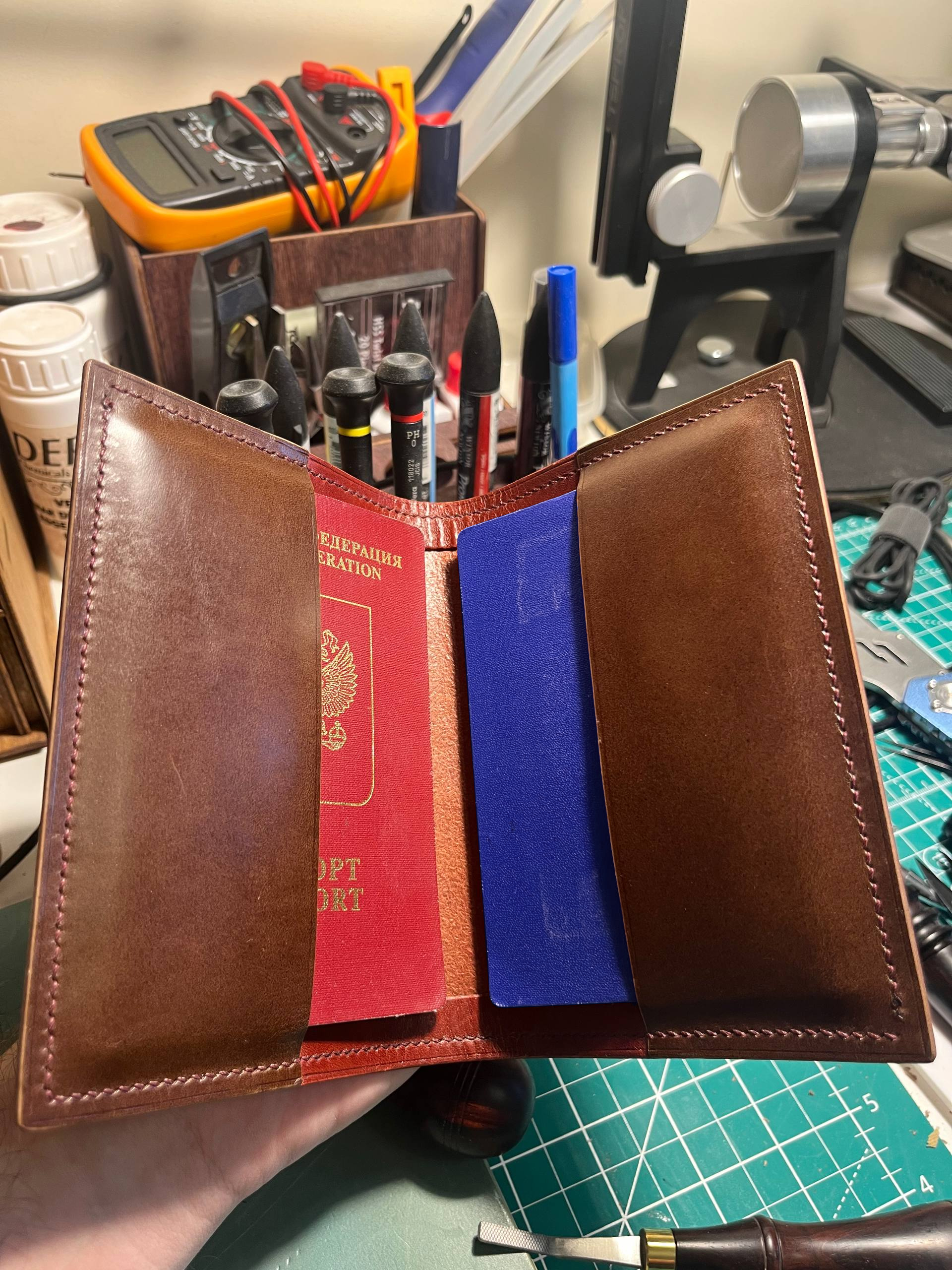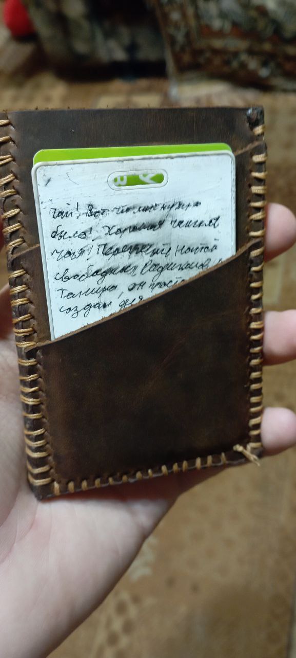 >>811492 Ладно, вроде пытаюсь выйти из кожевенной депрессии. Запилил сегодня кардхолдер Кофейная тема. На фото получилась кожа цвета бургунди, но на самом деле она коньяк