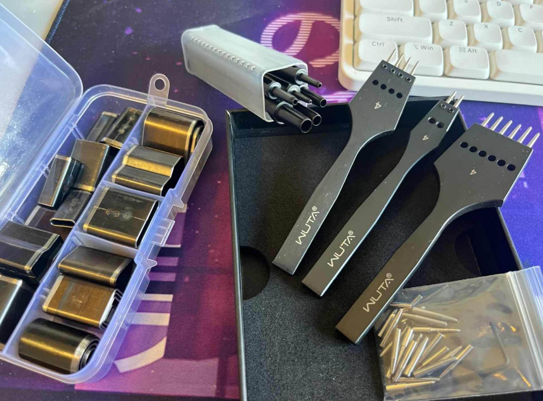 Заказал пикрил и думаю зачем. С одной стороны, есть пгф 4 мм первого поколения, черные которые, заточил их на наждачке и они хорошо пробивают. Но захотел затестить именно дыроколы. Выбор пал на вуту, но подумал, что 4 мм есть, и хочу попробовать 3.38, ну и нитку 0.35 к ним заказал. А теперь сомневаюсь, нужен ли 3.38 или заказать стандартные 4 мм дыроколы. Делаю кошелечки по лекалам из интернетов, там часто шаг 4 мм, и мне этот шаг нравится. Если взять вуту 4 мм, то тогда дополнительные сменные насадки - трубки для вуты просто пропадают.