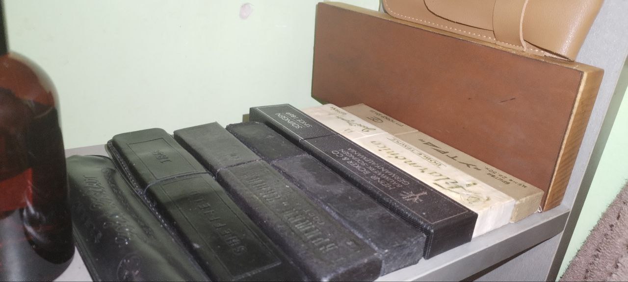 Я собрал себе полную коллекцию всех опасных бритв - от всех СССР, как какое-нибудь заурядное "утро", так и какие-нибудь эстетичные, с хранения "Яхта" и даже не самые, легендарные "Медицинские" - боже, насколько же они хороши. Но, не только СССР я ограничился! У меня также и потрясающий, наш, дореволюционный, классический ERN (разумеется, он не наш, а с Австрии завозился, но в РИ его закупали массового). И, боже, ФИлармоника, та самая, 14! И всякие испански, португалки, америнки - я собрал полнейшую коллекцию. Но, разве что, от американок я потом отказался, т.к. это просто более дешевые реплики европейских бритв без инноваций и с более плохим сплавом, субъективно.