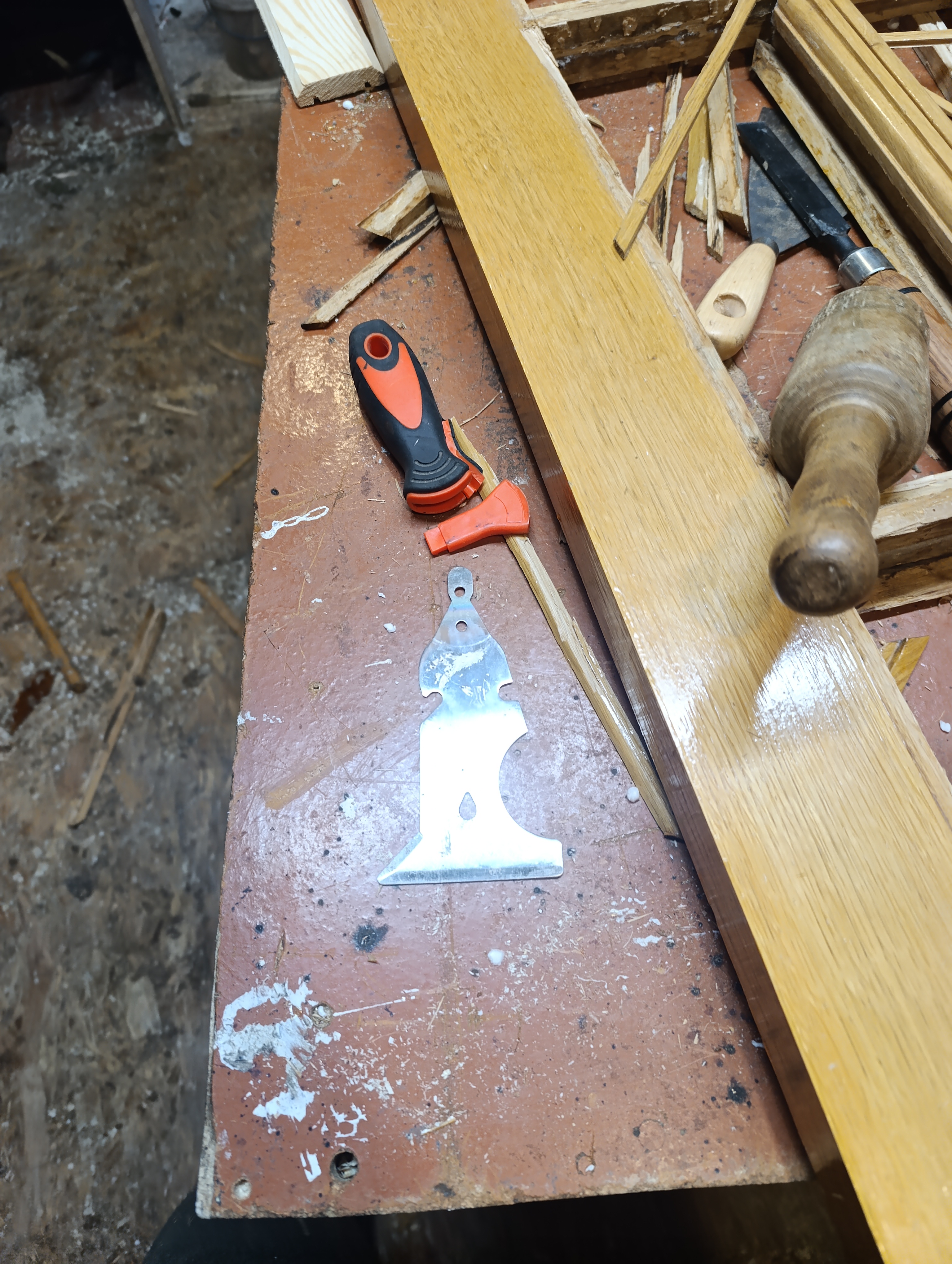 Один брус для ножек, 3 мебельных щита из сосны, 40 реек 20х20х1500, две сотни шкантов, а на сдачу клей и киянка - итого 6к на озоне. Из инструментов у меня шуруповёрт, сверло для дерева и ручная пила - а из помещений хрущевка где я живу.